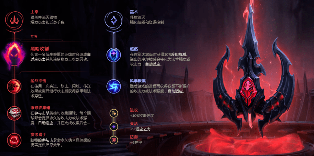属性加成:进攻(+10%攻击速度)+灵活(+9适应之力)+防御(+6护甲)