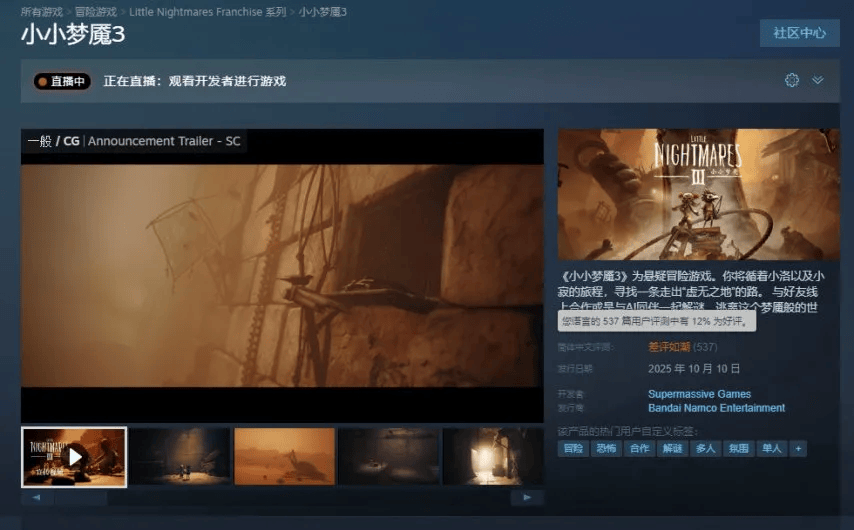 相比之下,隔壁《小小梦魇3》的好评率已经仅剩下12%了,这就是系列更换制作团队的代价。
