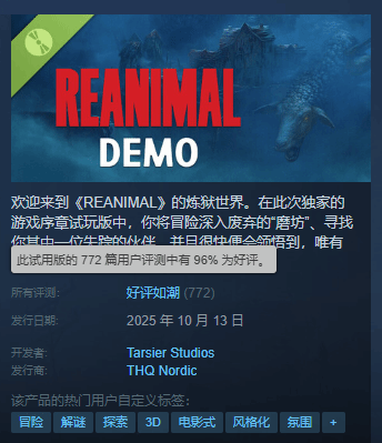 没时间为《小小梦魇3》的死哀悼了,就在10月14日,《小小梦魇》系列的原班团队在Steam上开放了其新作《REANIMAL》的免费试玩Demo,试玩一上线%的好评。