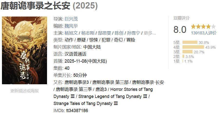 从第一季的7.4到第三季的8分,《唐诡》系列已经走出了一条罕见的IP进化路径。