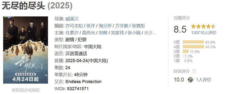 谁能想到,作为一部普法剧,《无尽的尽头》却出人意料拿到了今年国剧的最高分——8.5分。