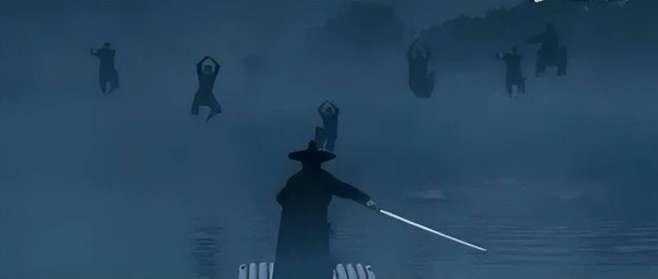 第二季动作戏全面升级,西门长海拔剑扫水,以水波护体,收势镜头的大量留白极具中国画美学。