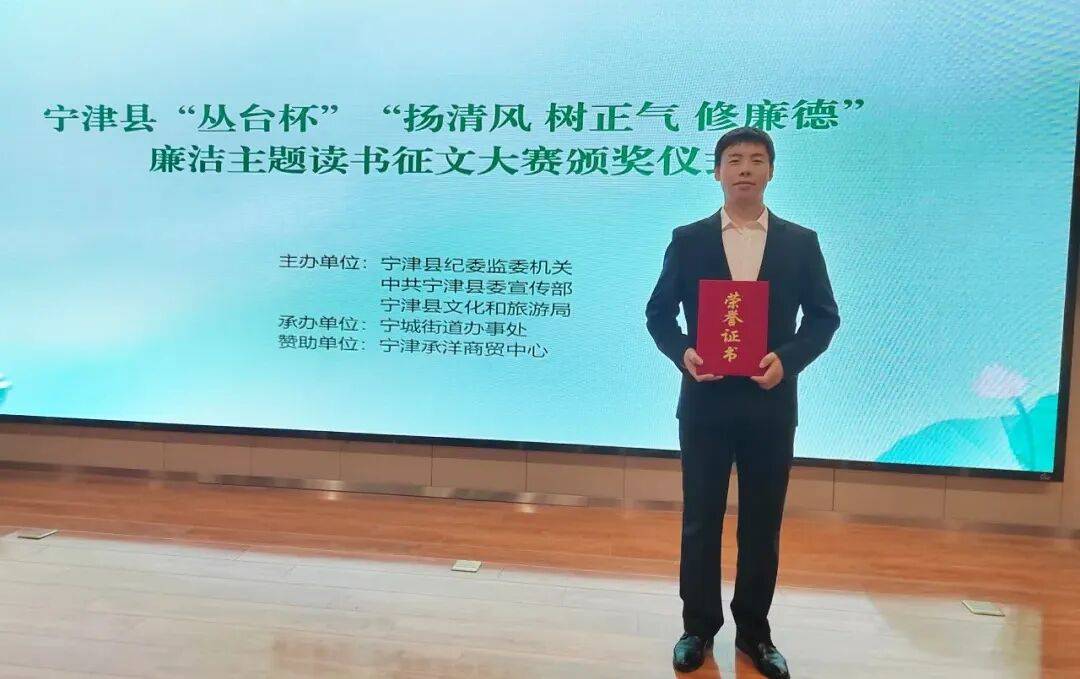 2025年1月17日,在宁津县纪委监委机关、县委宣传部、县文化和旅游局联合举办的“丛台杯”“扬清风 树正气 修廉德”廉洁主题读书征文比赛中,中医院党建办栾文磊报送的《岐黄扬正气,本草颂廉洁,读〈本草“廉”心〉有感》,在全县270余篇文章中脱颖而出,荣获优秀奖。
