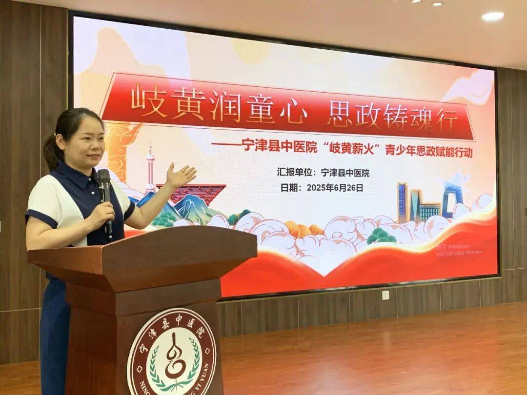 德州市首届青少年思想引领品牌项目展示交流活动在线上举行,全市各级团组织的代表参加,分享本地、本单位青少年思想引领特色品牌工作,宁津县中医院时晓敏以《岐黄润童心 思政铸魂行》为题,在活动中精彩展示,赢得广泛关注与好评。