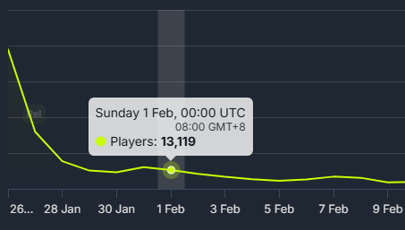 在这样的宣发策略下,《Highguard》的热度在正式发售的第二天就出现了断崖式下跌,直接从近10万的在线人,等到一星期后,游戏的在线人数已经缩水到了最初的十分之一。